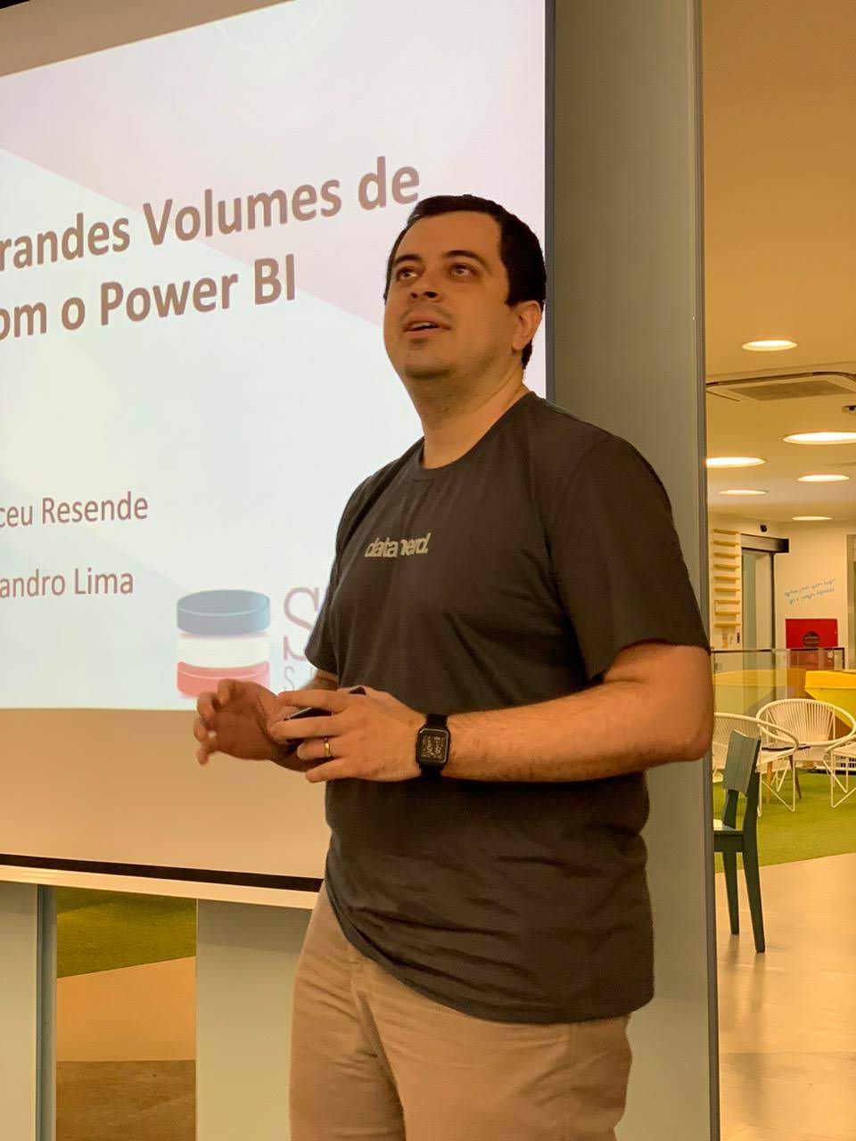 Além disso, o pessoal pôde assistir minha palestra com o Leandro Lima, onde demonstramos como consumir grandes volumes de dados (fato de 380 milhões de linhas + 4 dimensões) em apenas 1 segundo com o PowerBI, tanto pra carregar os dados pra dentro do Power BI quando para calcular os dados e mostrar numa tabela.