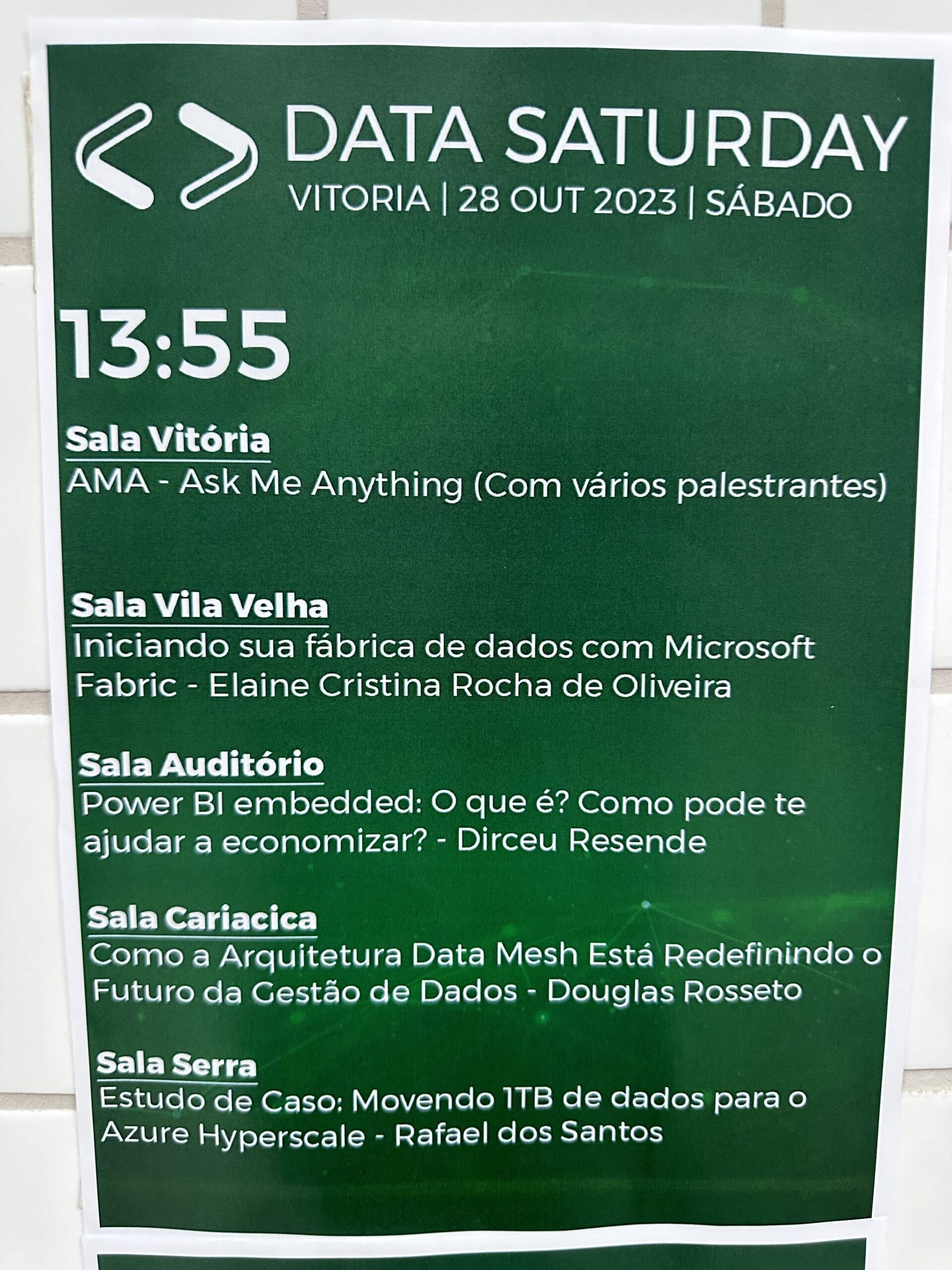 É com grande satisfação e honra que eu faço essa postagem sobre o Data Saturday Vitória 2023 – O maior evento de dados do Espírito Santo!
