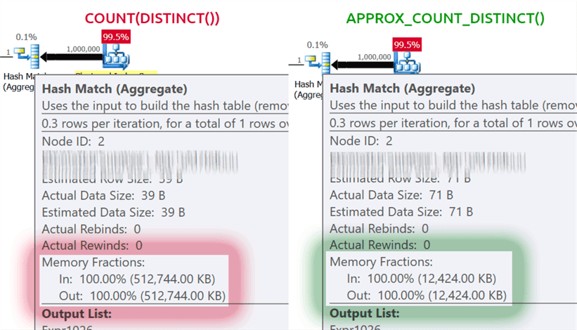 Agora, também obtemos esse comportamento para as consultas no modo de linha, sob o nível de compatibilidade 150. Se uma consulta for encontrada em um disco, a concessão de memória será aumentada para execuções subseqüentes. Se a memória real usada pela consulta for menor que a metade da memória concedida, as solicitações de concessão subseqüentes serão menores. Brent Ozar entra em mais detalhes em seu post sobre Adaptive Memory Grants.