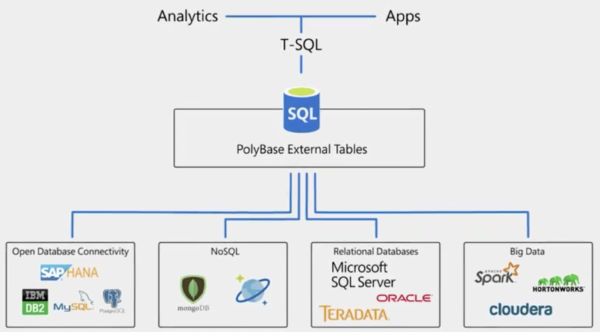 - Divida os silos de dados e forneça uma visualização em todos os seus dados usando a virtualização de dados. A partir do SQL Server 2016, o PolyBase permitiu que você executasse uma consulta T-SQL dentro do SQL Server para extrair dados de seu Data Lake e retorná-los em um formato estruturado – tudo sem mover ou copiar os dados. Agora, no SQL Server 2019, estamos expandindo esse conceito de virtualização de dados para fontes de dados adicionais, incluindo Oracle, Teradata, MongoDB, PostgreSQL e outras. Usando o novo PolyBase, você pode dividir silos de dados e combinar facilmente dados de várias fontes usando a virtualização para evitar o tempo, esforço, riscos de segurança e dados duplicados criados pela movimentação e replicação de dados. Novos “pools de dados” e “pools de dados” elasticamente escalonáveis tornam a consulta de dados virtualizados mais rápida, armazenando dados em cache e distribuindo a execução de consultas em muitas instâncias do SQL Server.