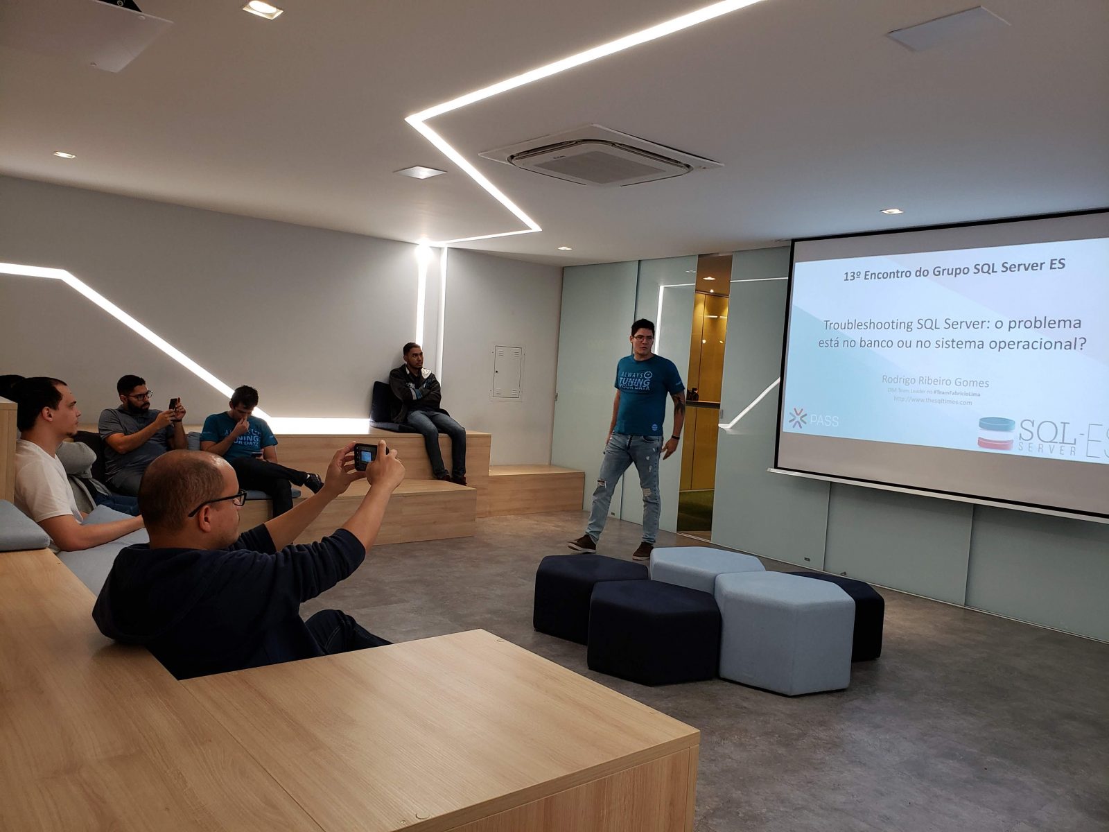 Nesse evento, aproveitamos a visita do especialista em SQL Server, Rodrigo Ribeiro Gomes, que mora em Brasília-DF e estava no Espírito Santo à trabalho, para organizar um evento “relâmpago”, em plena quinta-feira chuvosa. Nesse evento, o Rodrigo ministrou a palestra “Troubleshooting SQL Server: O problema está no banco ou no sistema operacional?”
