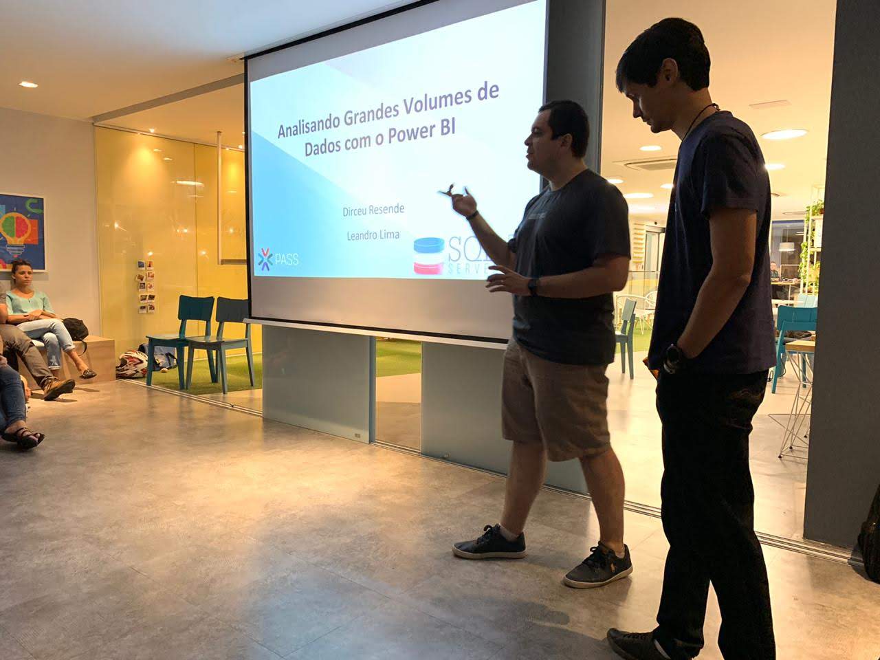 Além disso, o pessoal pôde assistir minha palestra com o Leandro Lima, onde demonstramos como consumir grandes volumes de dados (fato de 380 milhões de linhas + 4 dimensões) em apenas 1 segundo com o PowerBI, tanto pra carregar os dados pra dentro do Power BI quando para calcular os dados e mostrar numa tabela.
