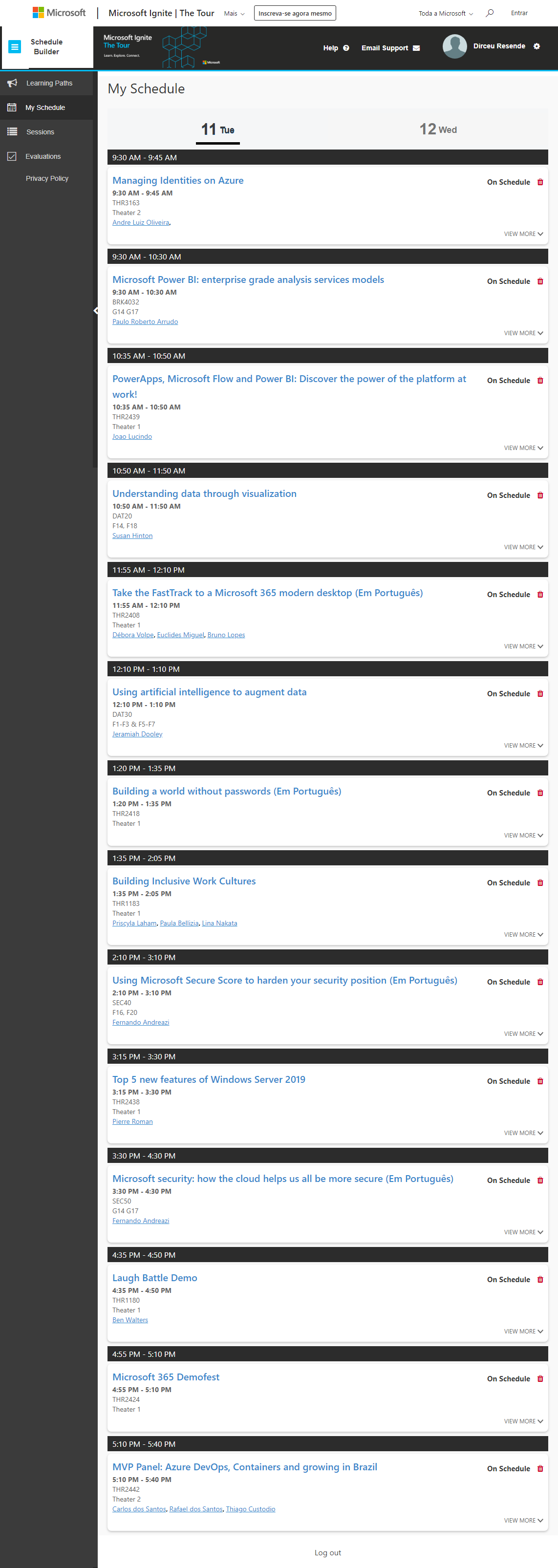 Dos dias 11 a 14, estarei em São Paulo para o Microsoft Ignite 2018 – The Tour, junto com o Fabrício Lima, onde iremos nos atualizar com as novidades que a Microsoft está disponibilizando em diversas áreas de atuação, como IA, Big Data, Azure SQL Database, Segurança e muito mais!