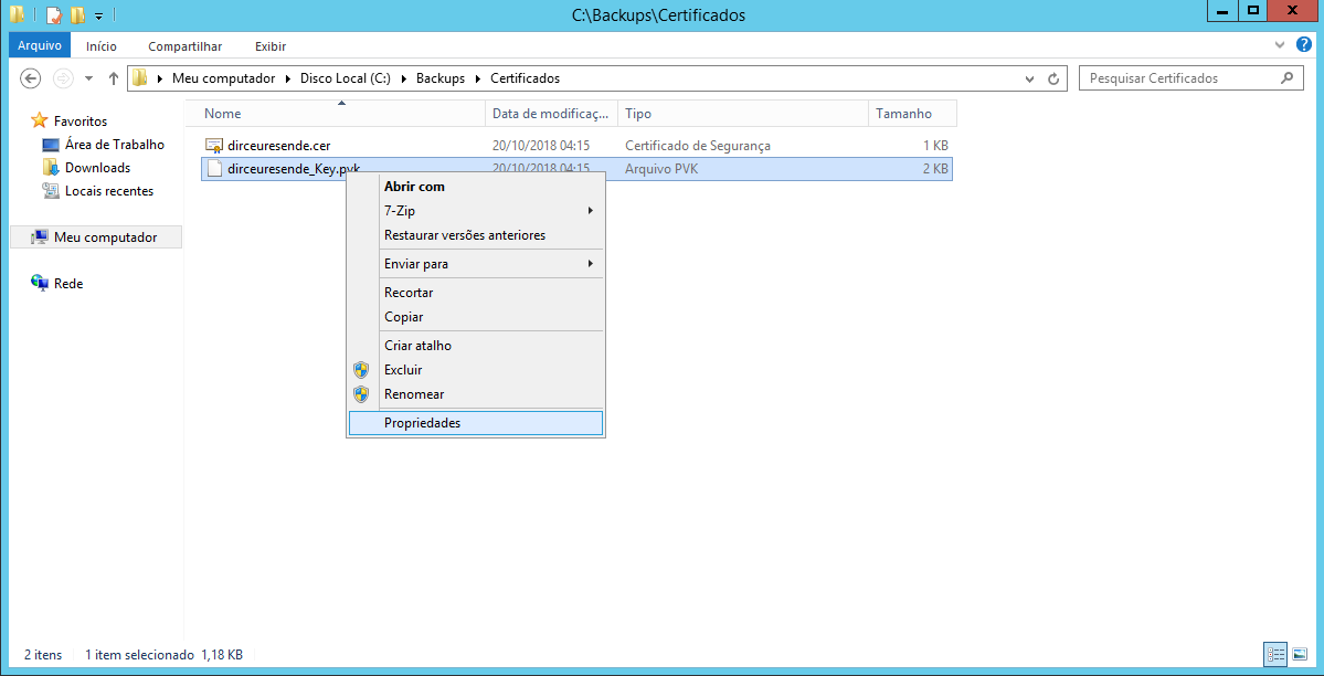 Comando para realizar o backup do certificado e da chave privada: