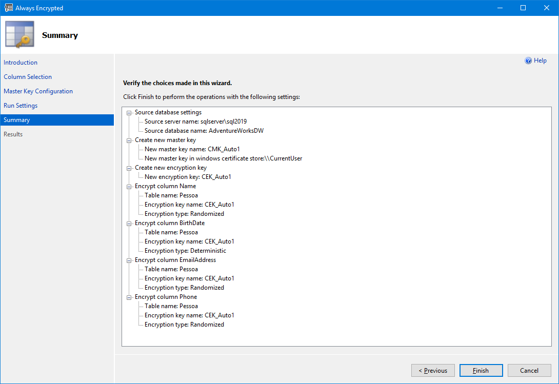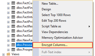 A forma mais prática de se criptografar uma coluna, é utilizando o SQL Server Management Studio (SSMS):