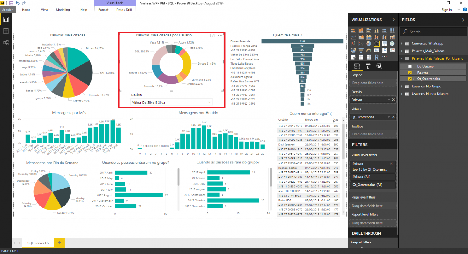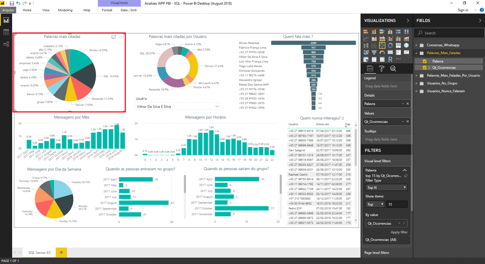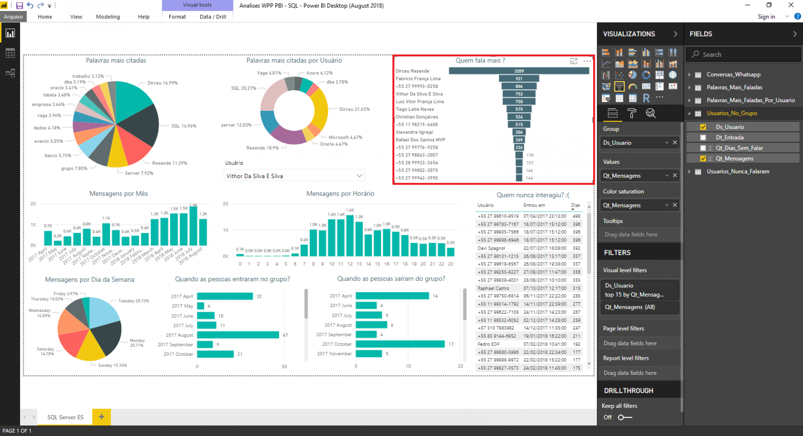 - Cria as tabelas para usar no Power BI (Usuarios_no_Grupo, Usuarios_Nunca_Falaram, Palavras_Mais_Faladas e Palavras_Mais_Faladas_Por_Usuario)