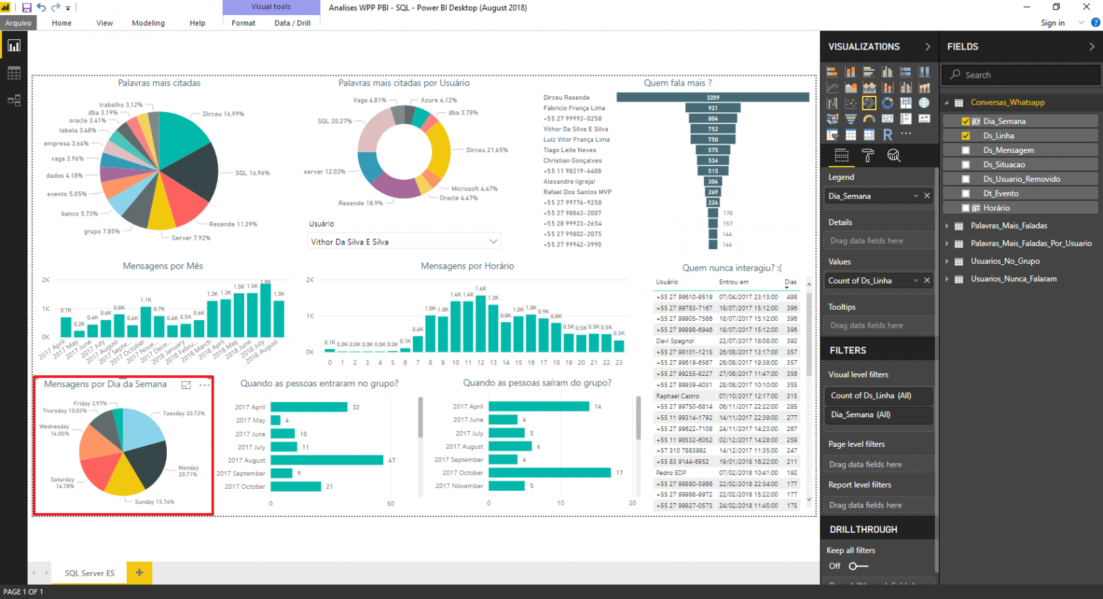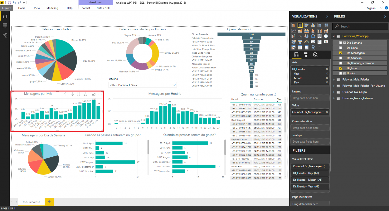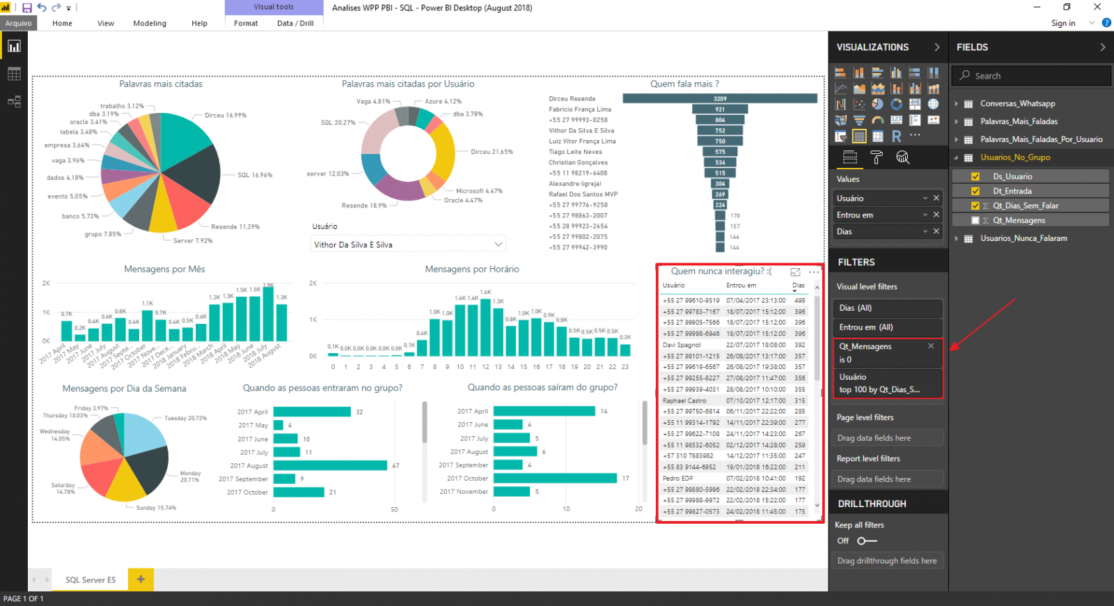 - Cria as tabelas para usar no Power BI (Usuarios_no_Grupo, Usuarios_Nunca_Falaram, Palavras_Mais_Faladas e Palavras_Mais_Faladas_Por_Usuario)